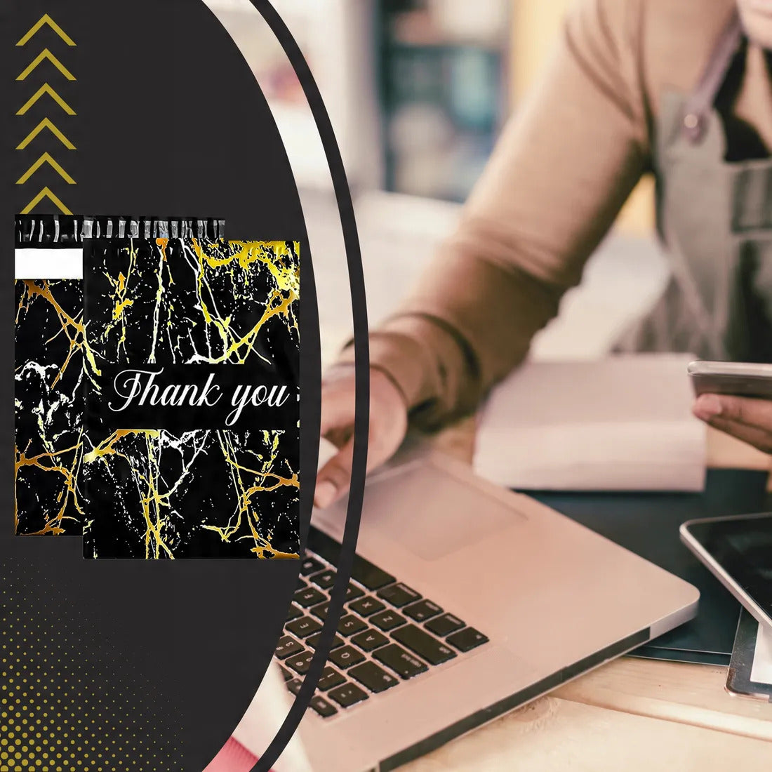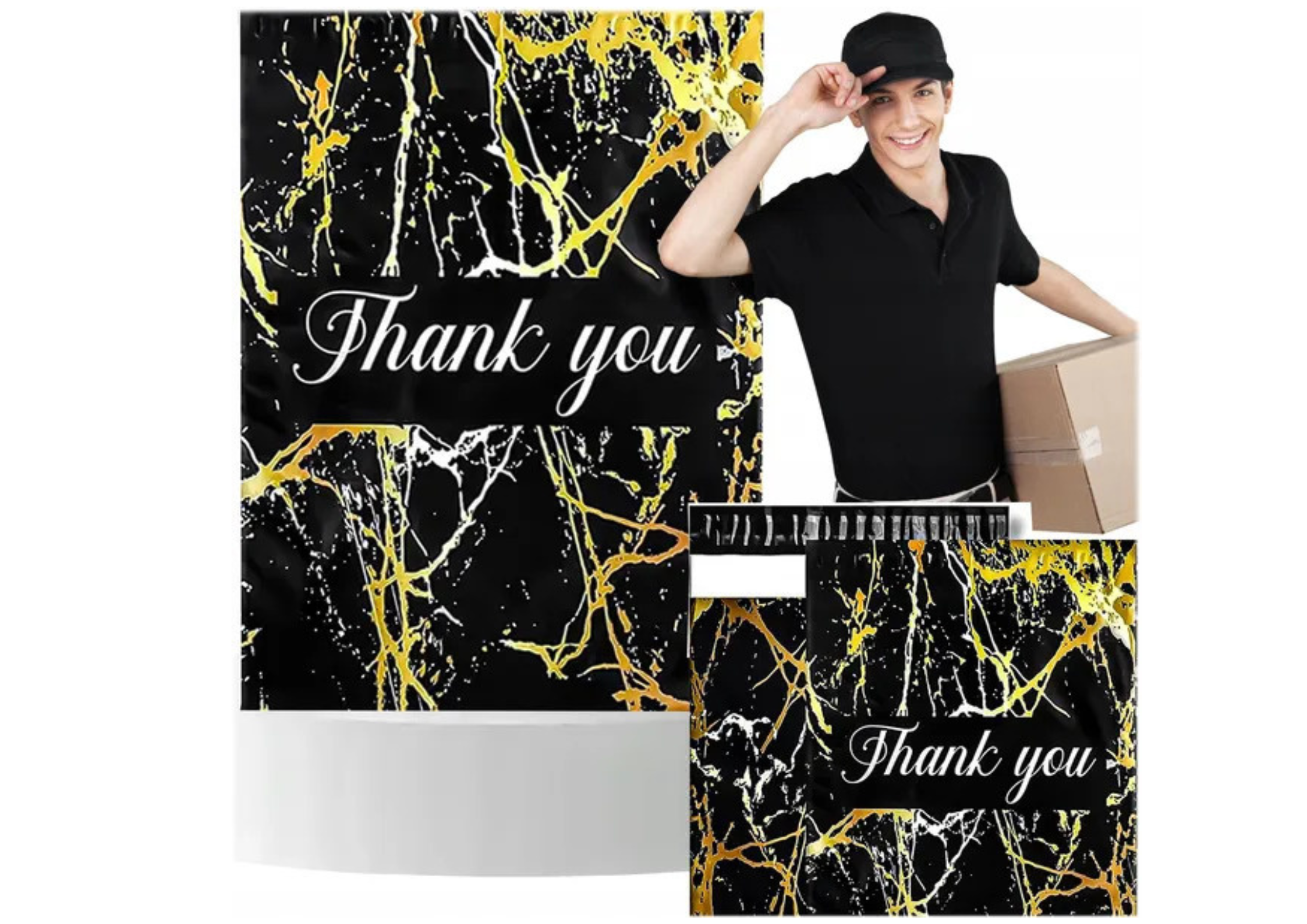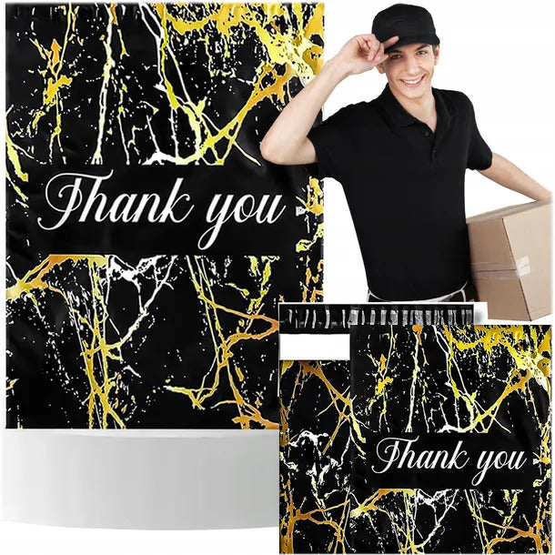 Foliopaki kurierskie mocne 255X370 ZŁOTY MARMUR THANK YOU 50 szt. na paczki