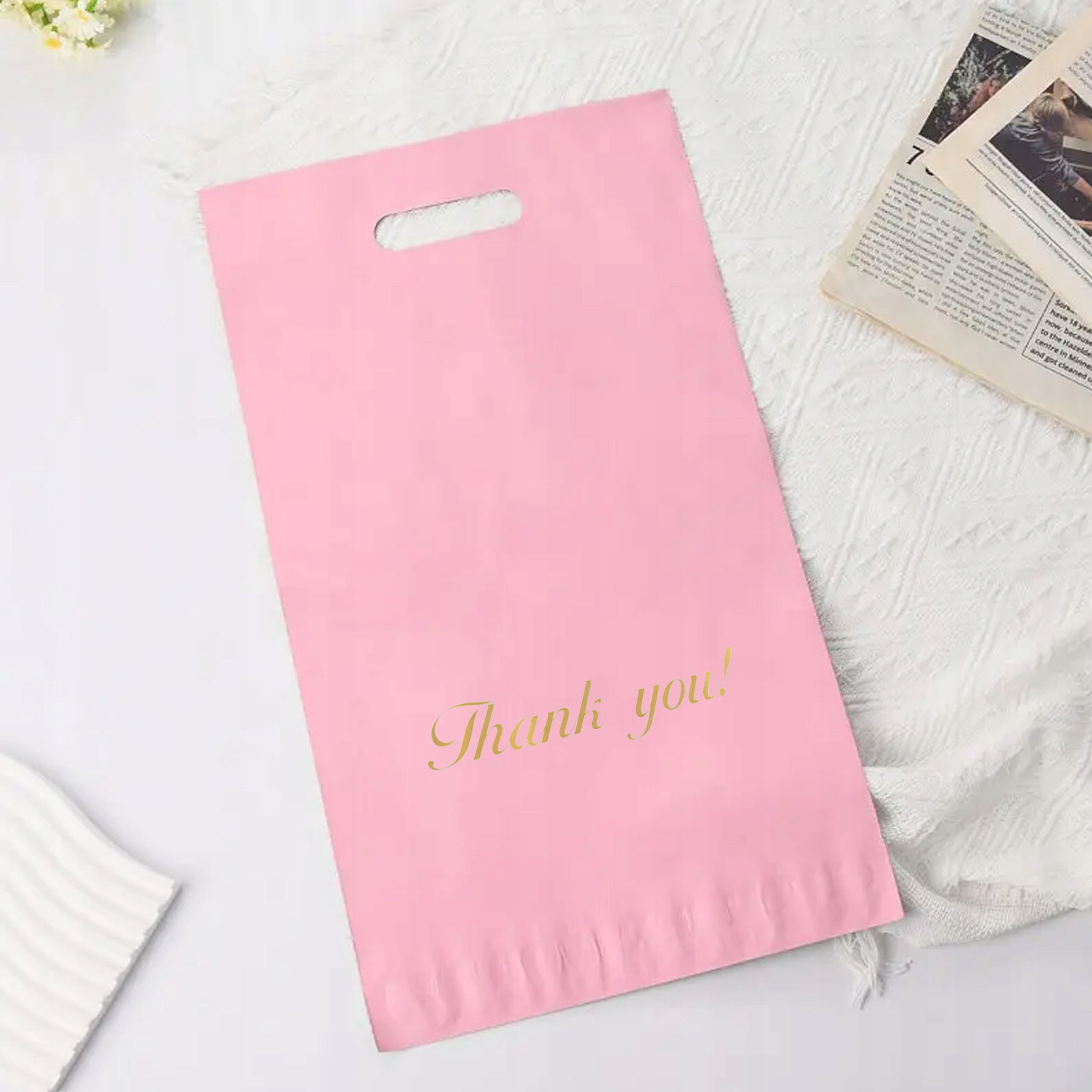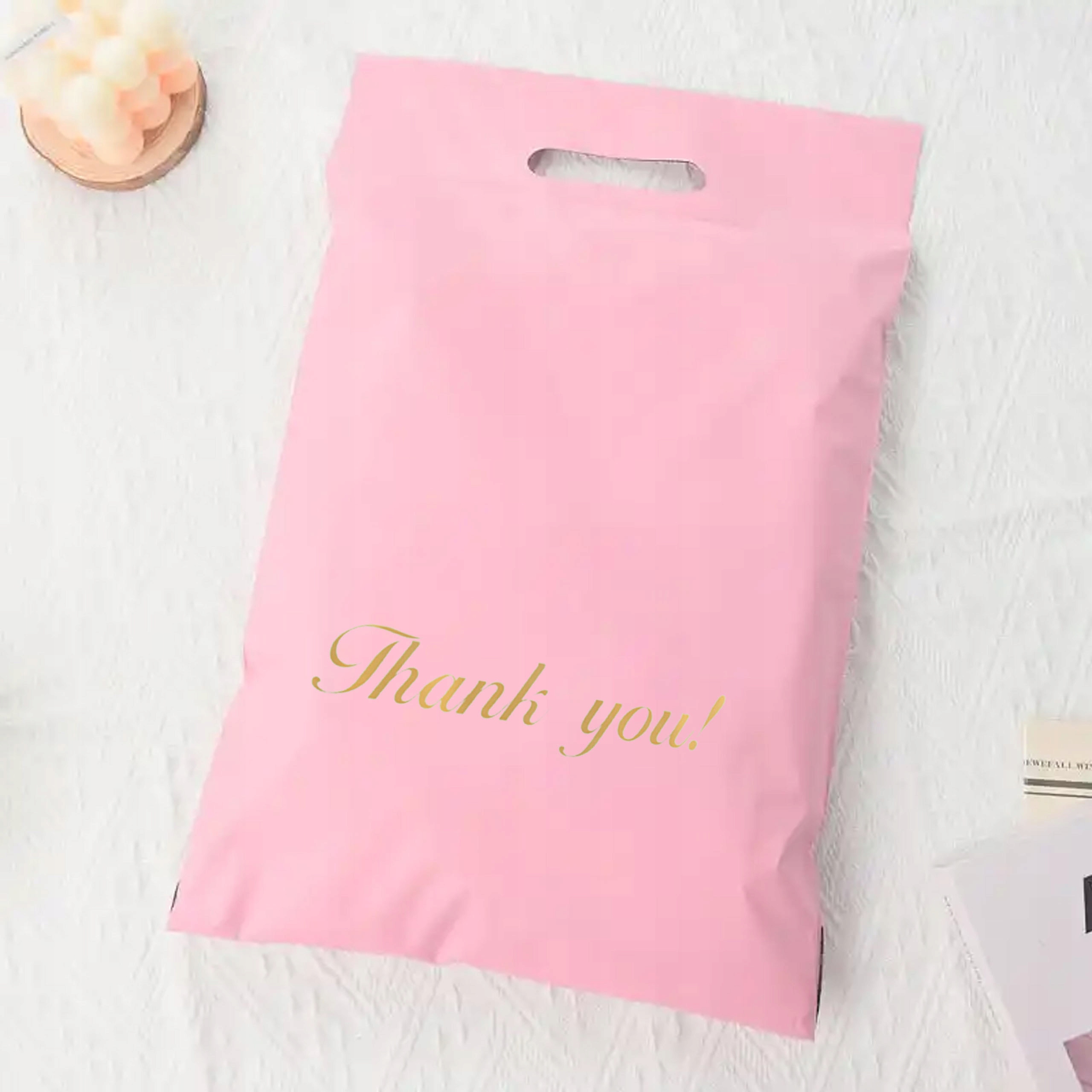 FOLIOPAK KURIERSKI FOLIOPAKI RÓŻOWE z RĄCZKĄ 500 x 600 + 70 mm (rączka) 50 szt z napisem "Thank You"