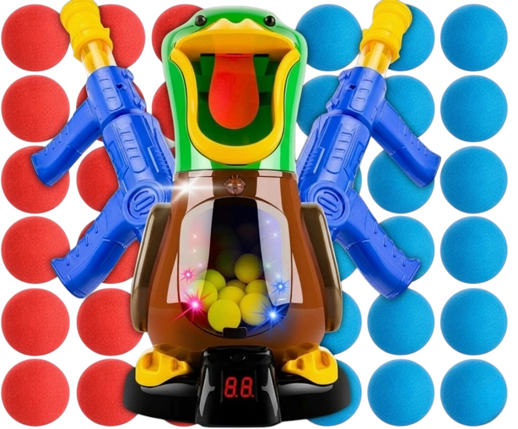 GRA GŁODNA KACZKA XXL 23CM LED STRZELANIE DO CELU 48 KULEK PREZENT DZIECI
