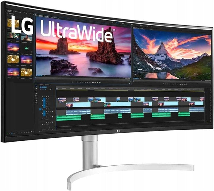 LG 38WN95CP-W. Długość przekątnej ekranu: 96,5 cm (38"), Rozdzielczość: 3840 x 1600 px, Typ HD: Quad HD+, Technologia wyświetlacza: QLED, Czas odpowiedzi (typowy): 1 ms, Natywne proporcje obrazu: 21:9, Kąt widzenia (poziomy): 178°, Kąt widzenia (pionowy): 178°. Wbudowane głośniki. Wbudowany USB hub. Standard VESA, Opcja regulacji wysokości. Kolor produktu: Biały