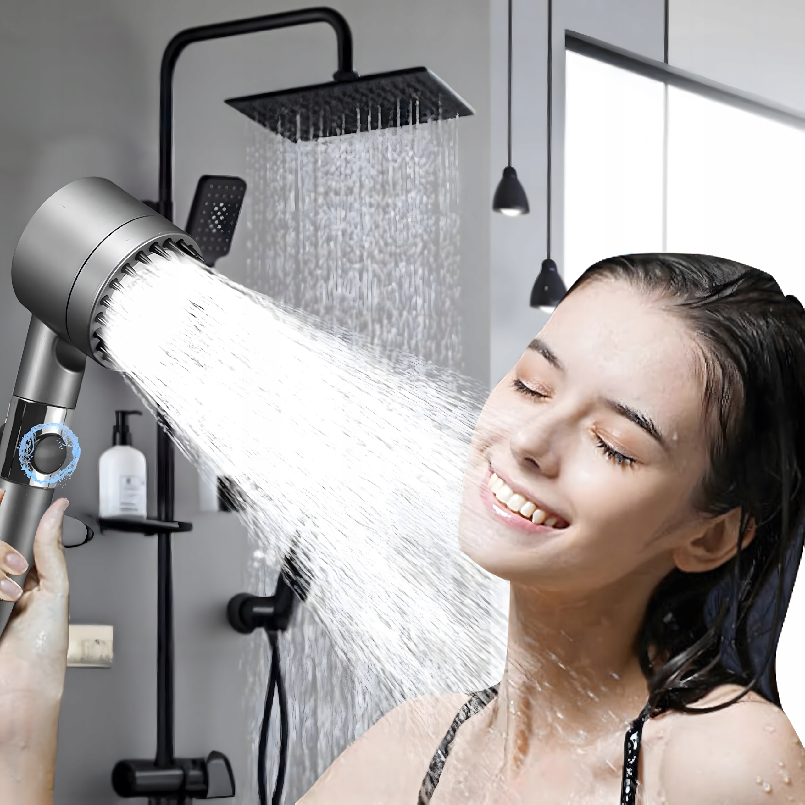 🌀 4 tryby natrysku - Pełny deszcz, mocny strumień mieszany, masaż wodny i tryb pauzy – dostosuj kąpiel do swoich potrzeb.