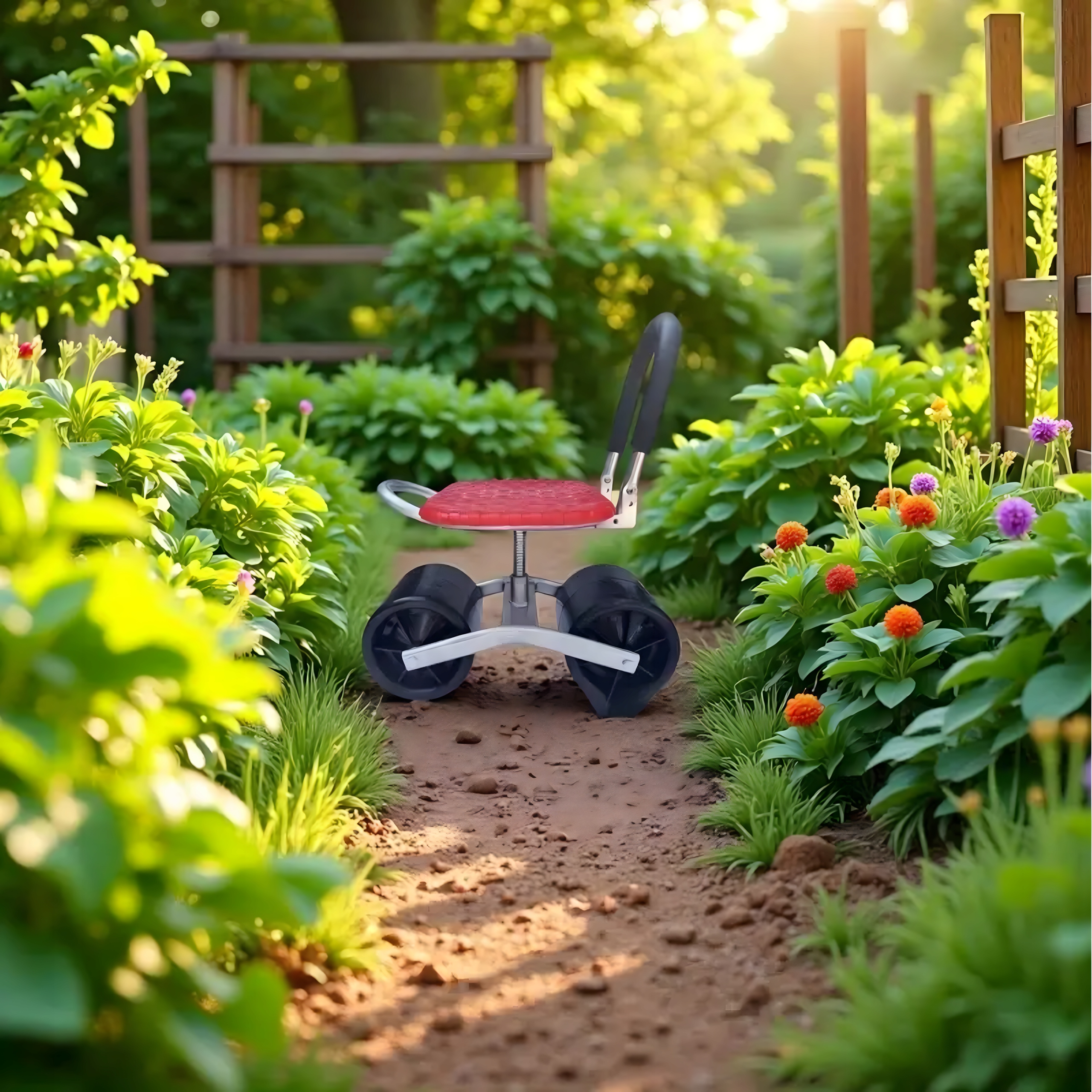 🏡🍅🫛Wózek Taboret Stołek Ogrodowy Obrotowy 360 z Siedziskiem na Kółkach 🏡🍅🫛