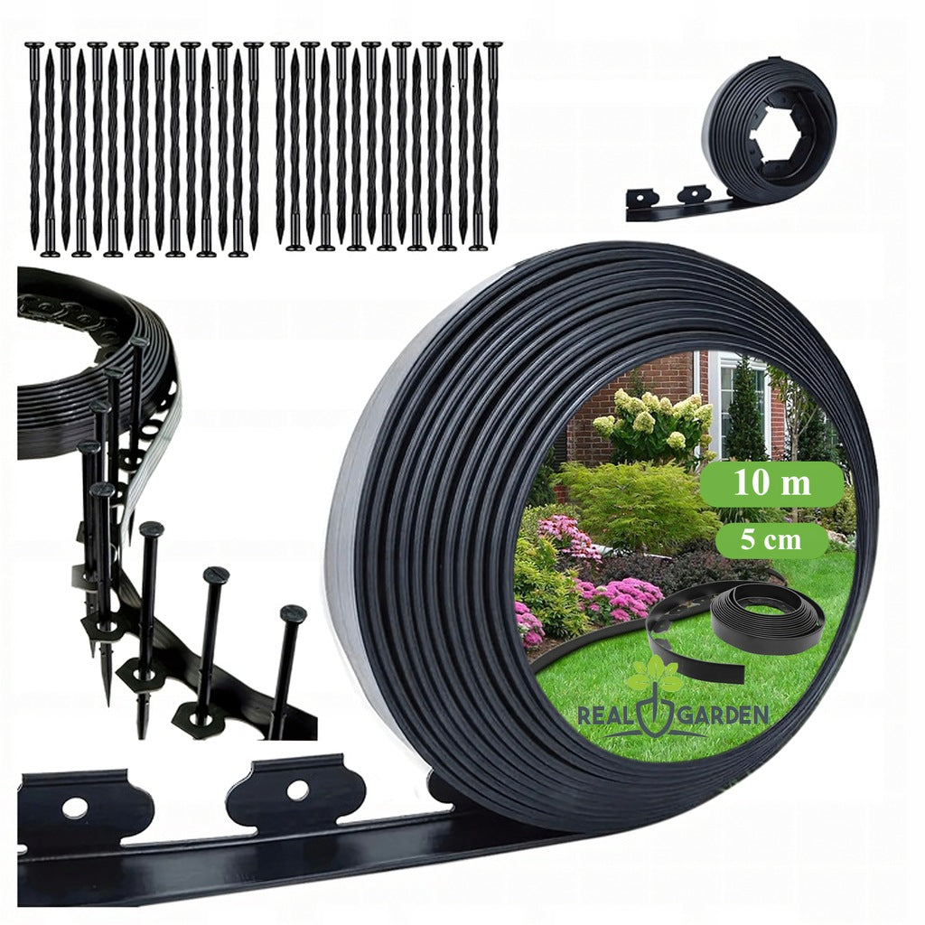 🧑🏻🌾🏡〰️OBRZEŻE TRAWNIKOWE CZARNE 50x50x10m OGRODOWE 30 KOŁKÓW KOTEW ZESTAW 🧑🏻🌾🏡〰️